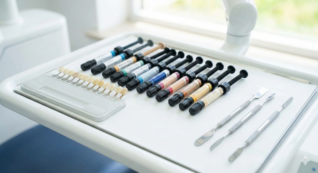 歯は単一の色ではありません。根元の方は色が濃く、先端にいくほど透明感が増します。当院では、複数の色調のレジンを精密に重ね合わせる「多層充填」を行い、隣の歯と見分けがつかないほどの自然な仕上がりを追求します。